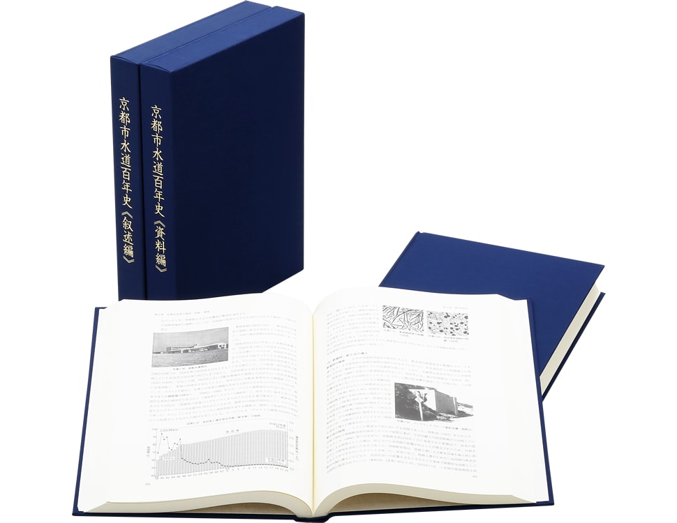 平成24(2012)年の京都都市水道創設100周年を記念し刊行した書籍で、各時代を象徴する資料や写真を幅広く採録、今につながる100年のあゆみを具体的に御覧いただけます。